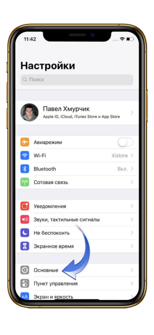 Первый шаг — открыть «Настройки», а затем выбрать пункт «Основные».