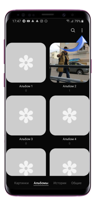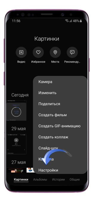 Для отключения данной функции вам необходимо открыть приложение «Галерея», нажать на три точки в правом углу и на «Настройки».