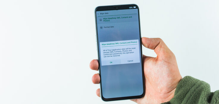 Затем вы сможете выбрать вариант сброса с сохранением SMS, контактов и фотографий либо с удалением всех данных.