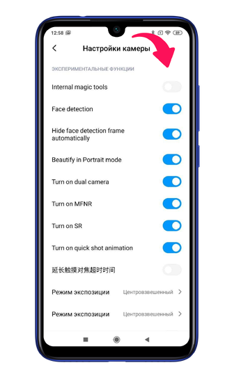 Внизу списка настроек будут располагаться экспериментальные функции. В зависимости от модели вашего смартфона Сяоми список данных функций может отличаться.