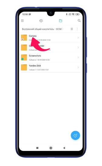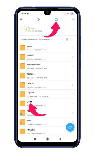 В разделе «Внутренний общий накопитель» выберите папку DCIM.
