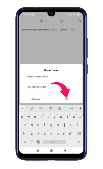 Во всплывающем окне задайте название папке — lab_options_visible. Перепроверьте правильность имени и нажмите на «ОК».