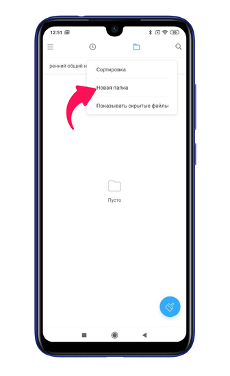 Нажмите на три точки, расположенные справа вверху, и на пункт «Новая папка».