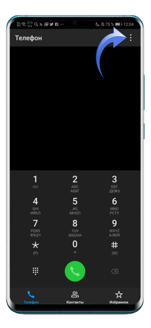 Сначала вам необходимо открыть приложение «Вызовы», в котором нужно нажать на три точки, расположенные вверху слева.