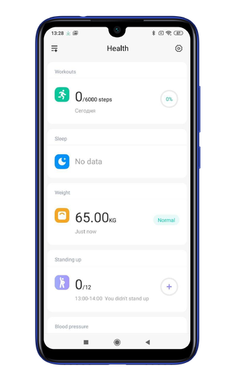 Далее вы окажетесь в главном меню, где можно просмотреть данные о пройденных шагах, сне, весе, физической активности и пульсе.