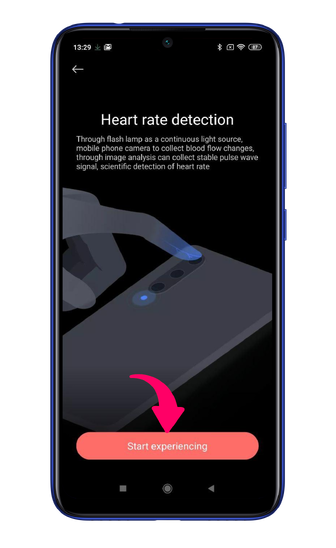 Затем приложите указательный палец к основной камере смартфона и вспышке так, чтобы они были закрыты. Также кликните на клавишу Start.