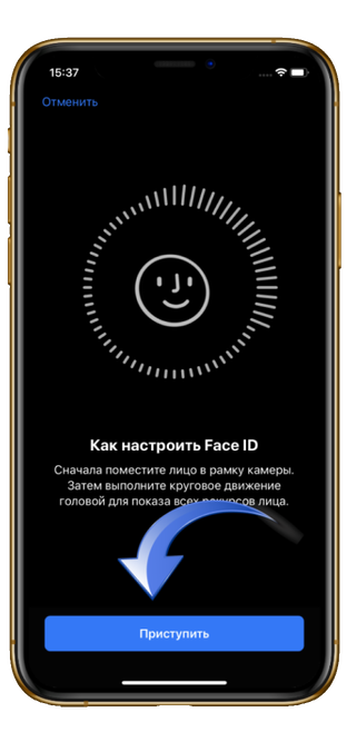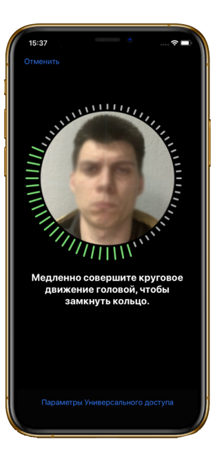 Разместите ваше лицо в рамке и начните плавно поворачивать головой. При этом iPhone нужно зафиксировать в одном положении. В случае если вы не можете двигать головой, зайдите в пункт «Параметры универсального доступа».