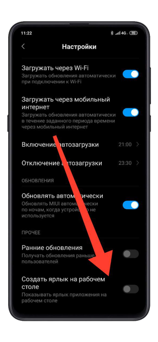 Чтобы иметь быстрый доступ к пункту «Обновления», вы можете добавить иконку на рабочий стол. Для этого потребуется выставить активное значение в пункте «Создать ярлык на рабочем столе».