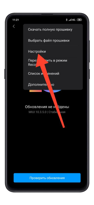 Для настройки обновлений MIUI вам следует открыть «Настройки» — «О телефоне» — «Обновление системы». Затем необходимо нажать на иконку с тремя точками, расположенную вверху справа. В появившемся меню нужно нажать на «Настройки».