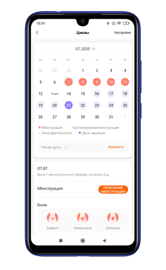 Теперь вы сможете просматривать предполагаемые даты начала менструации и овуляции в приложении.