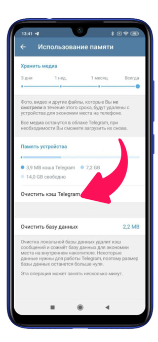Некоторое время потребуется для анализа, после чего нажмите «Очистить кэш Telegram».
