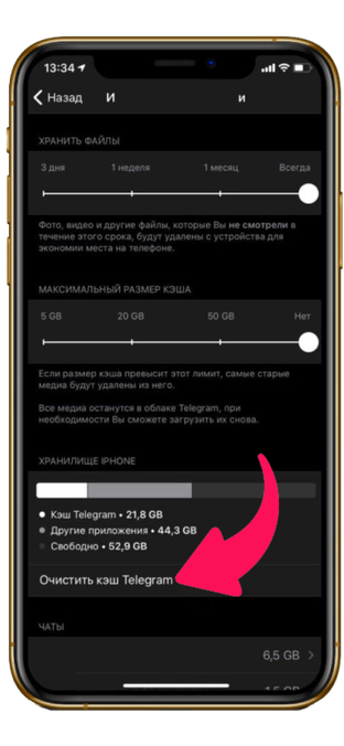 Так на iPhone нам удалось очистить более 20 ГБ памяти. Стоит отметить, что вы можете установить автоматическую очистку приложения, при которой скачанные файлы будут храниться на смартфоне ограниченный период времени. Для этого укажите желаемый диапазон времени в пункте «Хранить медиа». Обращаем ваше внимание, что данные из чата не удалятся, а вы сможете их скачать снова.