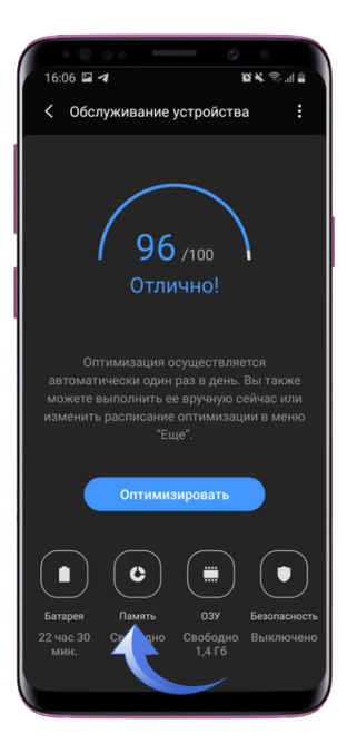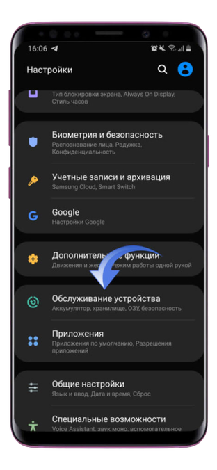 Сначала вам потребуется открыть приложение «Настройки» и выбрать пункт «Обслуживание устройства».