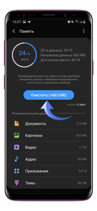 Здесь вы можете удалить данные кэша, которые занимают довольно большой объем памяти. Что такое кэш? Это изображения, музыка, документы и видео, которые сохраняются на вашем Samsung при использовании мессенджеров, например, Telegram, Viber, «ВКонтакте» и др.