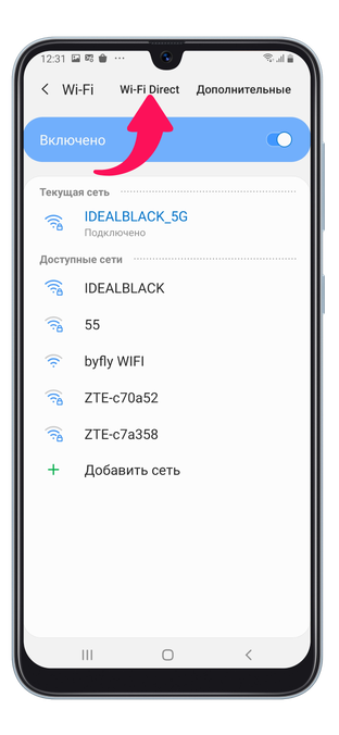 Далее выберите Wi-Fi Direct, данный пункт будет доступен только в случае активации вай-фай-модуля.