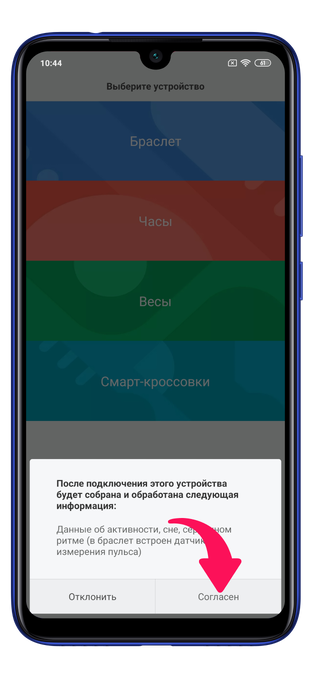 Подтвердите свое согласие, что Mi Fit будет собирать ваши личные данные.