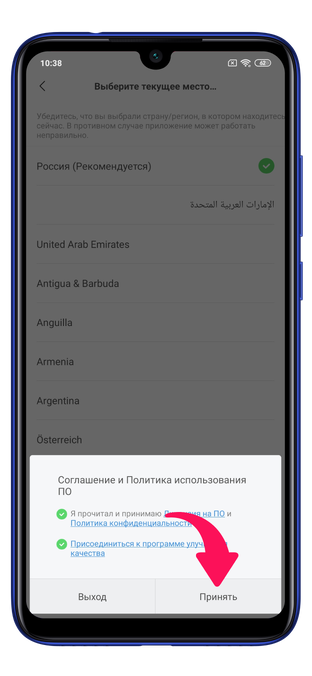 Затем ознакомьтесь с соглашением и политикой Mi Fit и нажмите на «Принять».