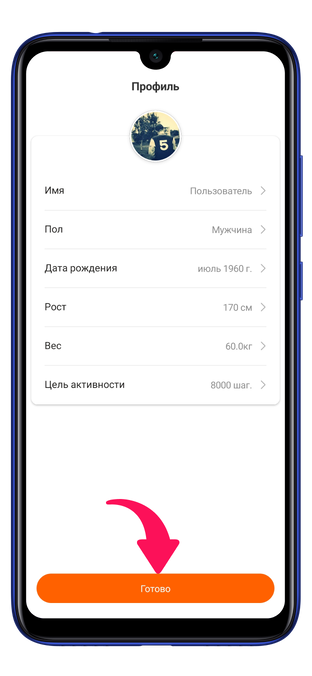 Введите информацию о себе и нажмите на «Готово».
