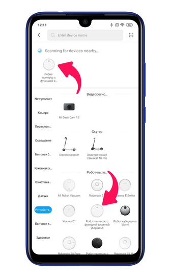 Следующий шаг — сброс настроек Wi-Fi на самом пылесосе. Нажмите кнопку включения и кнопку домой на 3 секунды, пока не услышите звуковой сигнал. По завершению сброса Mi Robot Vacuum Mop P появится в списке гаджетов, которые доступны для подключения в Mi Home. Также вы можете выбрать пылесос вручную.