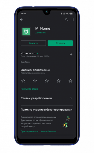 Сперва скачайте фирменное приложение Mi Home. Оно доступно как в магазине приложений «Play Маркет», так и AppStore.