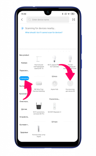 Если вы приобрели дополнительные датчики Xiaomi, нажмите на контроллер.