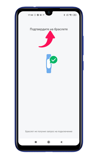 Как только на смартфоне отобразится «Подтвердите на браслете», нажмите на отметку на самом Ми Бэнд 5.