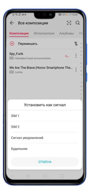 А сейчас вам нужно выбрать назначение для рингтона. Вы можете поставить мелодию как на звонок, так и на будильник или сообщения. Кстати, имеется возможность установки одной и той же мелодии для двух SIM-карт.