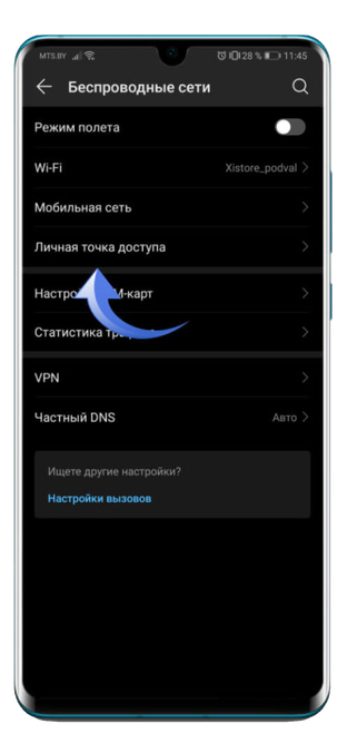 Здесь необходимо нажать на пункт «Личная точка доступа».
