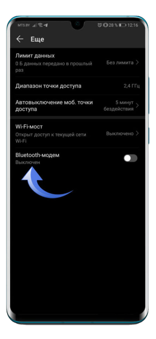 Имеется возможность активации точки доступа Wi-Fi по Bluetooth-соединению. Для этого необходимо открыть пункт «Еще» и активировать чекбокс «Bluetooth-модем».