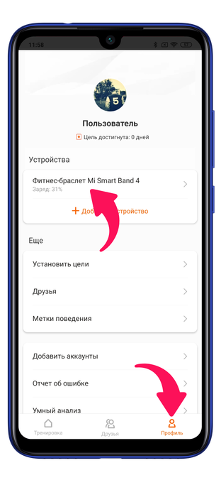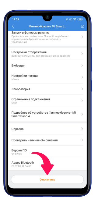 Воспользуйтесь приложением Mi Fit, если ваш фитнес-трекер подключен к нему. Войдите в свой аккаунт и нажмите на название гаджета.