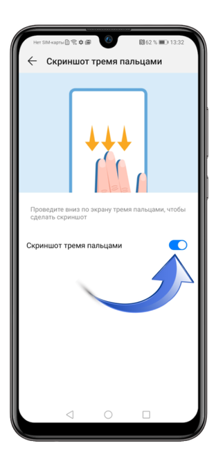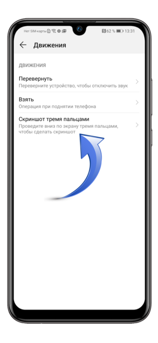 Самый быстрый вариант создания снимка экрана — это провести сверху вниз тремя пальцами по нему. Данная функция доступна не на всех моделях Huawei.