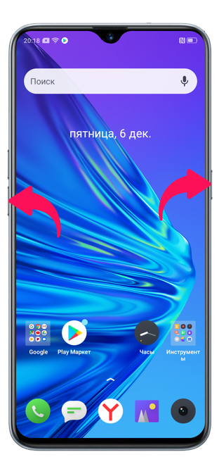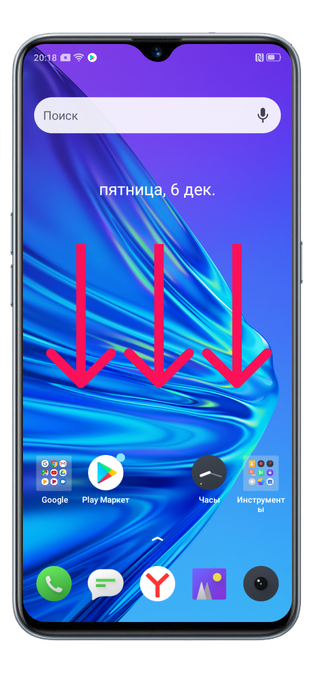 Следует сделать жест сверху вниз — провести тремя пальцами по дисплею вашего Realme.