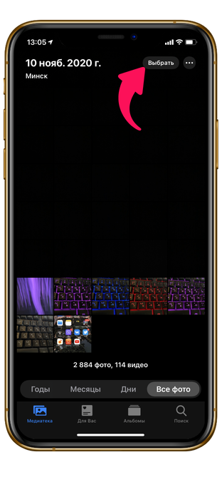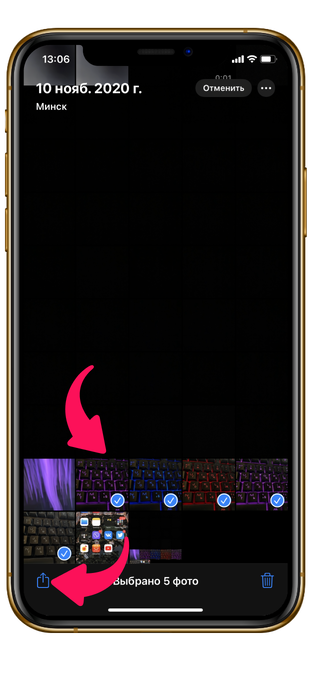 Выберите живые фотографии, из которых будет создано видео, и нажмите слева внизу на «Отправить».