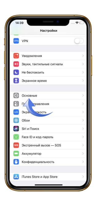 Для открытия приложения вам необходимо зайти в «Настройки» iPhone и выбрать «Основные».