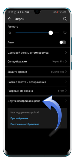 В данном меню необходимо выбрать пункт «Другие настройки экрана», который находится в самом низу списка.