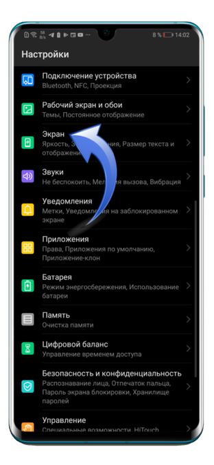Первым делом вам нужно открыть «Настройки» — «Экран».