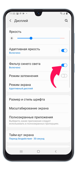 С этого момента уровень синего излучения на Самсунге уменьшится, а ваши глаза будут под защитой.