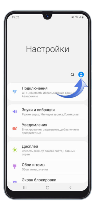 Первый шаг — открыть «Настройки» и нажать на синюю иконку с человеком, расположенную справа.