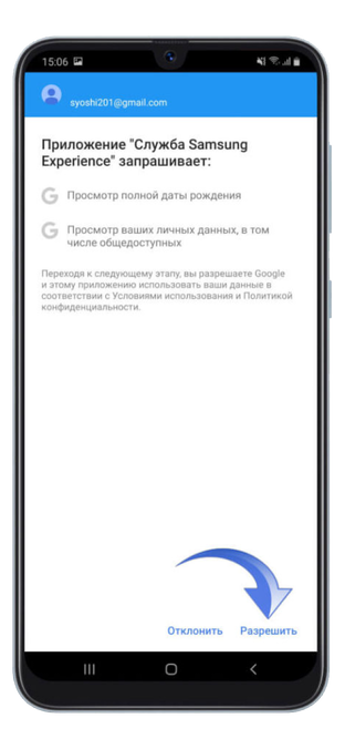 Далее вам нужно будет предоставить разрешения для службы Самсунг.