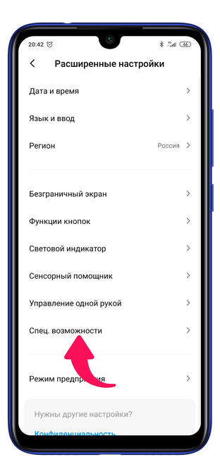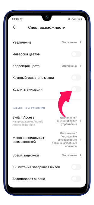 Чтобы деактивировать анимацию на смартфоне Сяоми, откройте пункт «Спец. возможности».