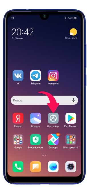 Первый шаг — зайдите во встроенное приложение «Настройки».