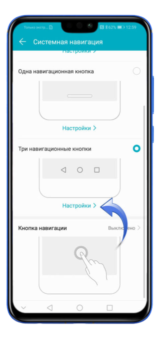 В данном разделе находите «Три навигационные кнопки» и нажимаете на «Настройки».