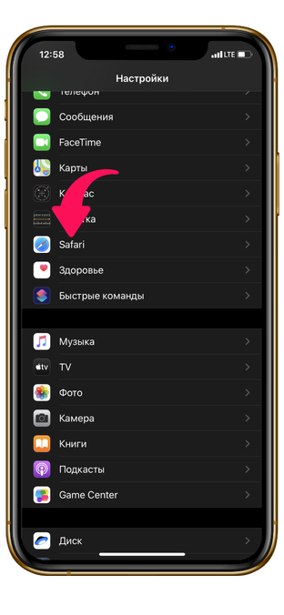 Отыщите пункт Safari.