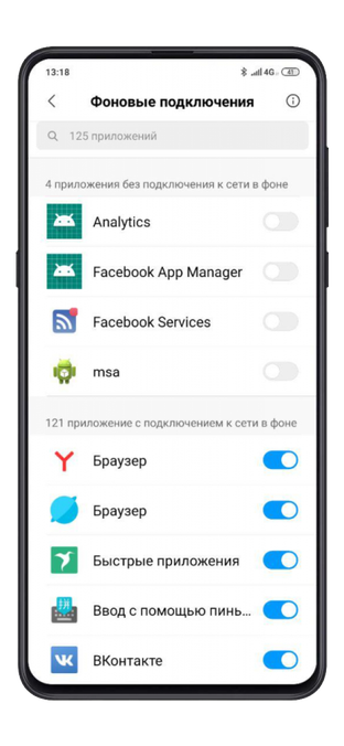 В открывшемся списке следует снять галочки со следующих программ: Analytics, Facebook App Manager, Facebook Services, msa.