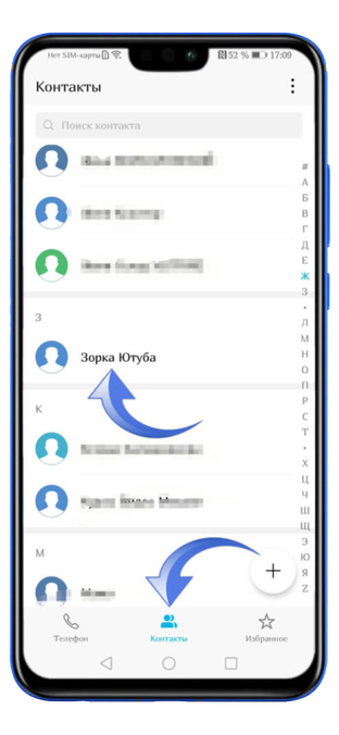 Теперь можно открыть стандартное приложение «Контакты», в котором следует выбрать нужный контакт.