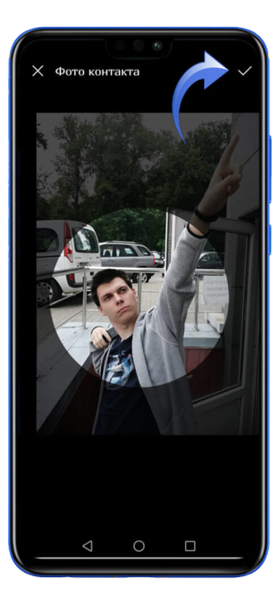 Находите нужную фотокарточку и определяете круговую зону, которая будет отображаться во время звонка. Затем нажмите на «Окей».