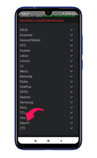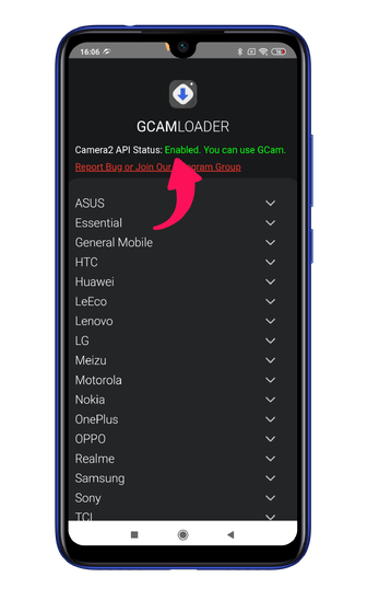 Установив и открыв приложение, вверху вы увидите статус Camera2api. Зеленая надпись свидетельствует о готовности вашего аппарата установить камеру от Гугл.