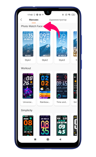 В данном меню можно выбрать и установить любой циферблат из предложенных бесплатных изображений либо поставить свою картинку с помощью подменю Photo Watch Face.