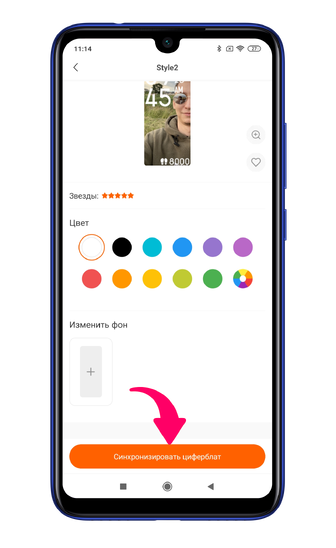 По завершению установки имеется возможность изменения цвета шрифта, после чего необходимо кликнуть на «Синхронизировать циферблат».
