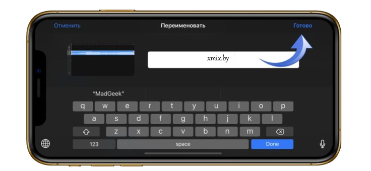Теперь введите название трека на латинице и подтвердите свои действия нажатием кнопки «Готово».